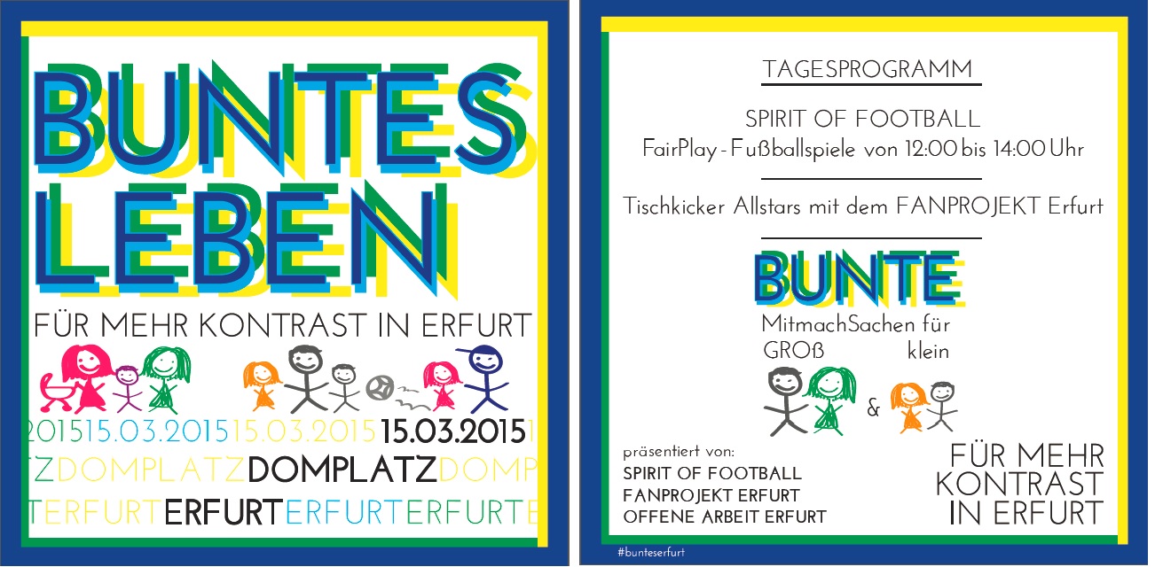 Eine bunte Kickeraktion für Vielfalt gibt es nichtsdestotrotz am 15. März auf dem Erfurter Domplatz:
